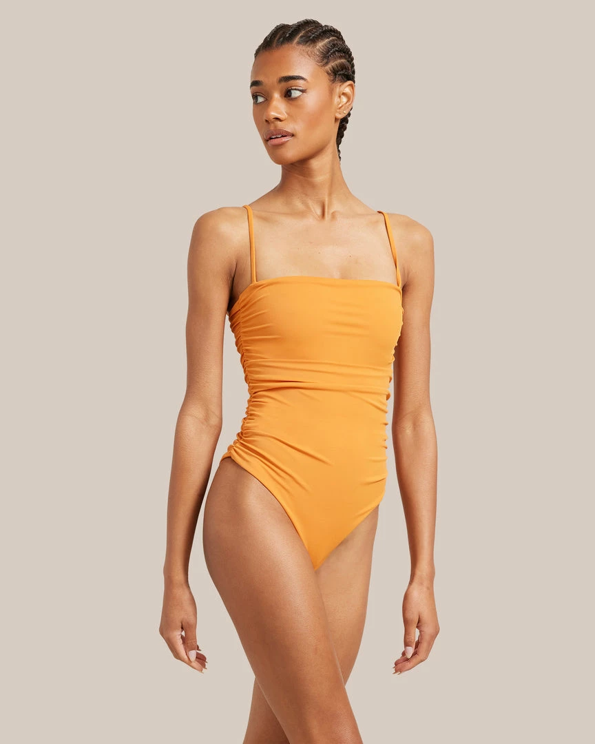 Belle The Label Vacation Ruched Maillot Straight-Neck One Piece
