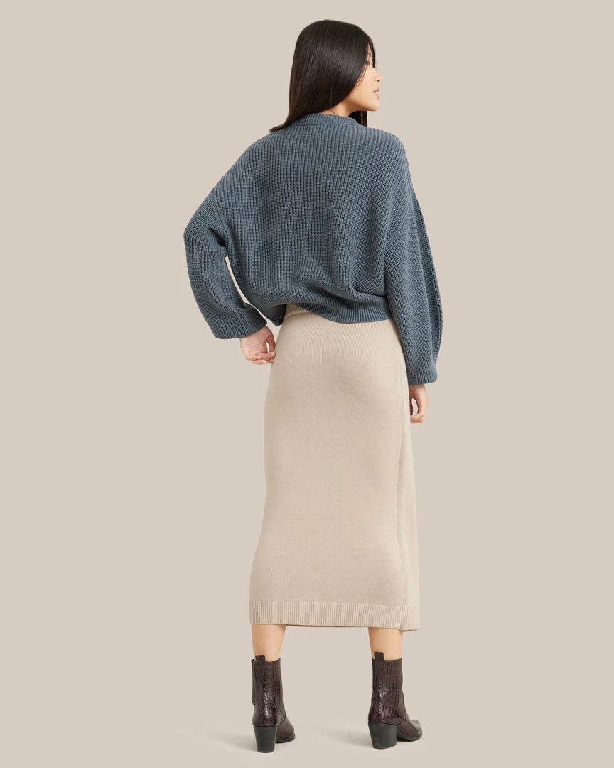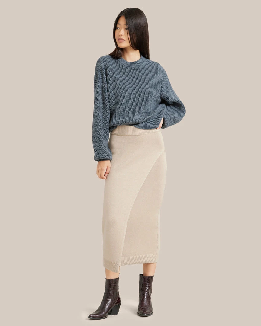 A midi with the sophistication of a design-forward wrap skirt, but the ease of a regular pull-on style.