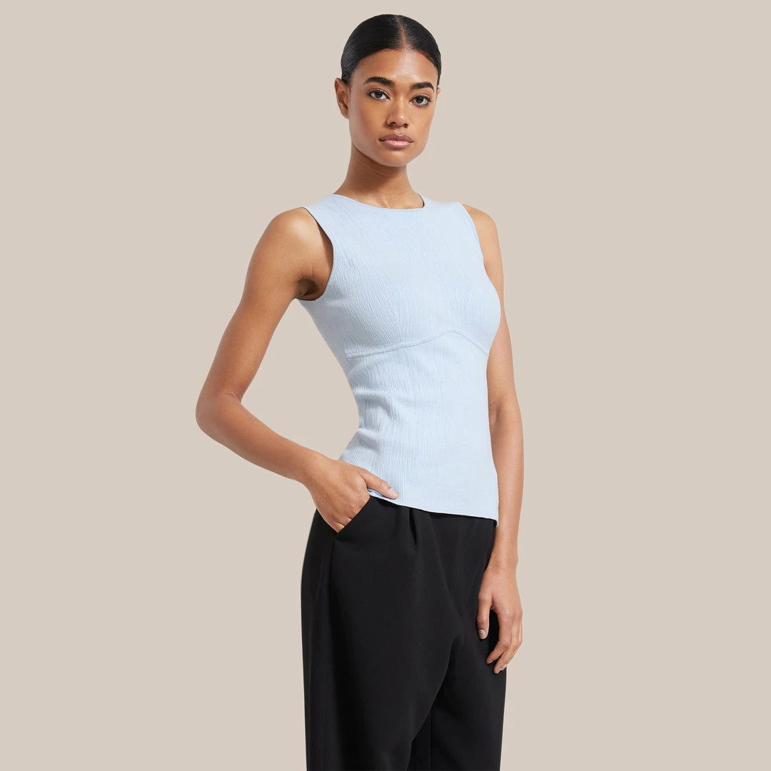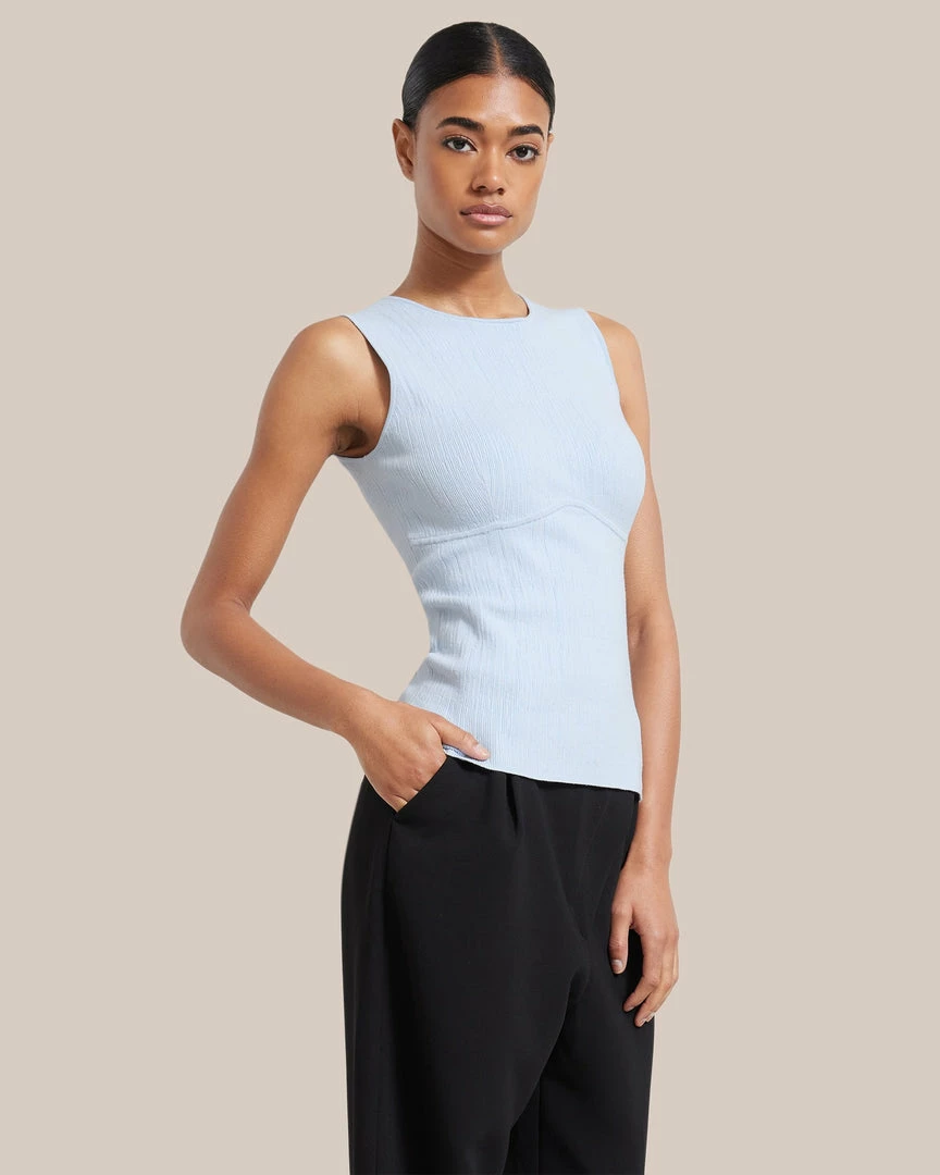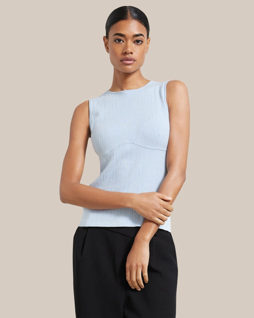 Modern, sleek, and versatile, Cecily is the perfect transitional wardrobe piece. With a flattering contour detail, this light sweater tank elevates any look.