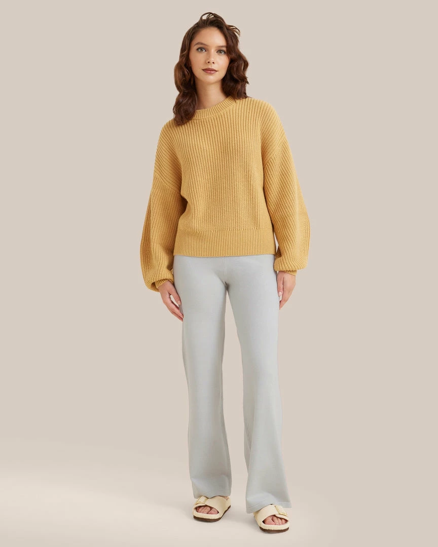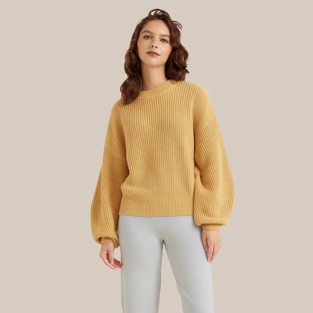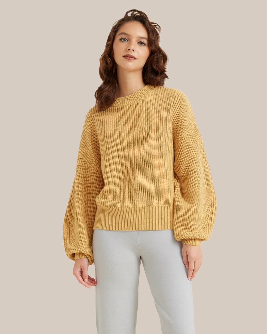 A soft ribbed knit with a slightly cropped body and full sleeves — to make a subtle statement any day of the week.