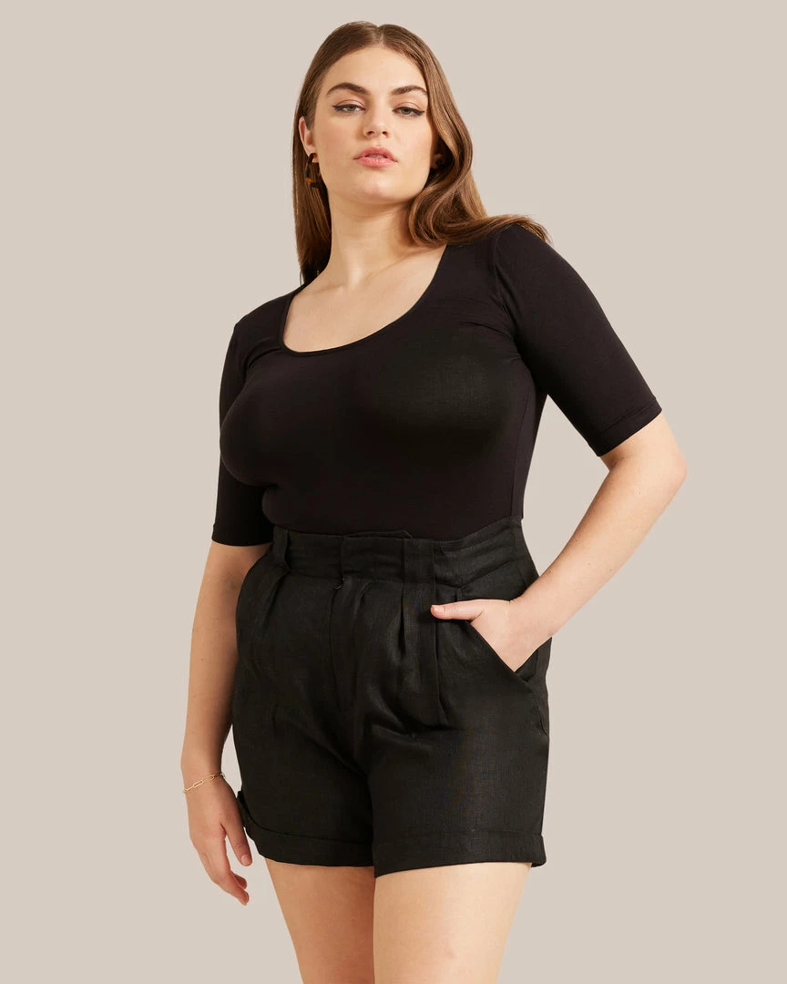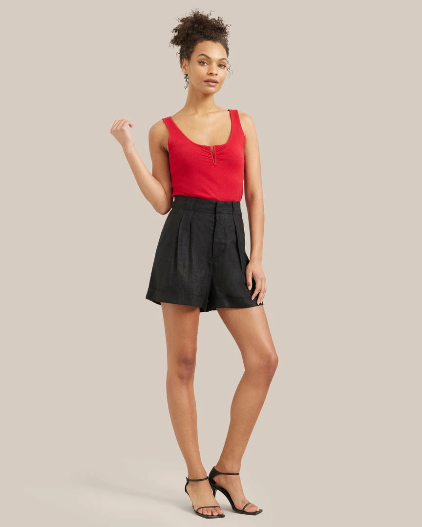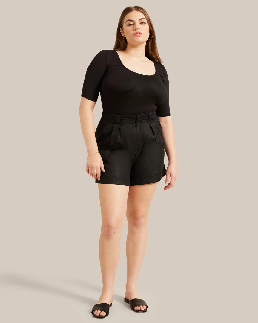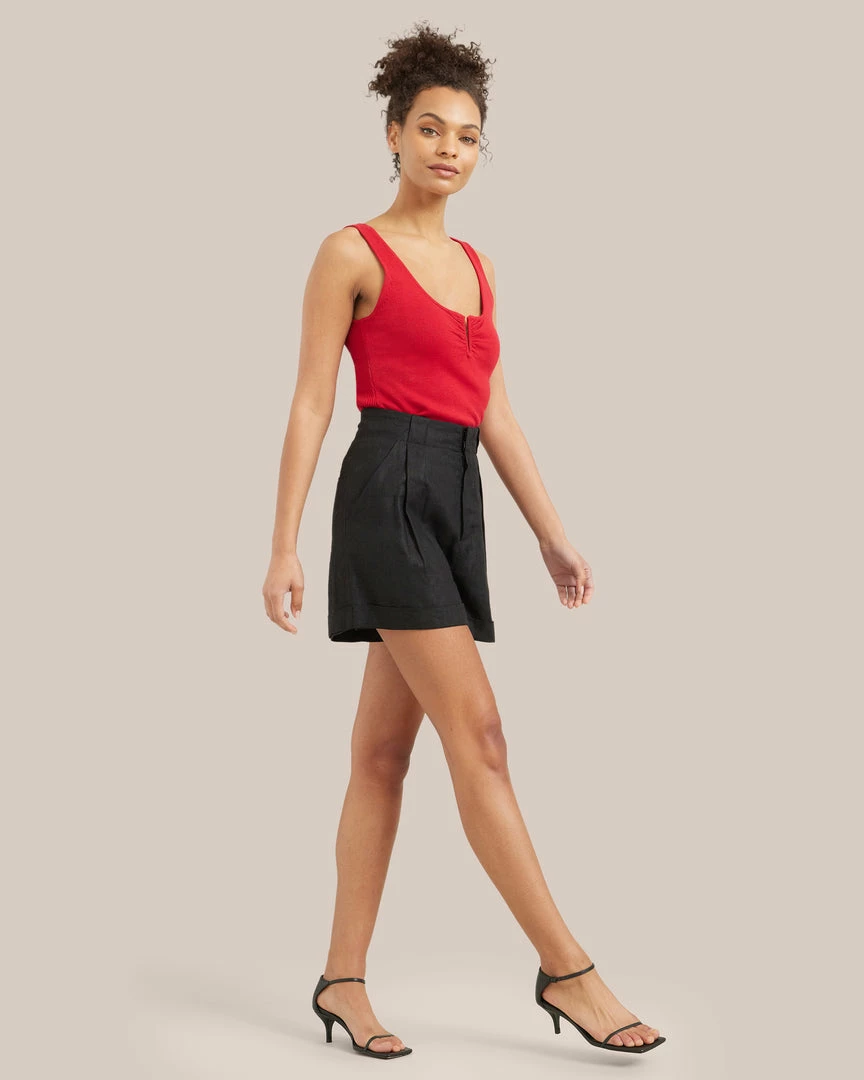 This sleek, timeless short in breathable linen is perfect for sunnier days. With flattering pleated details, Avery is perfect with an easy tee or light tank for any occasion.