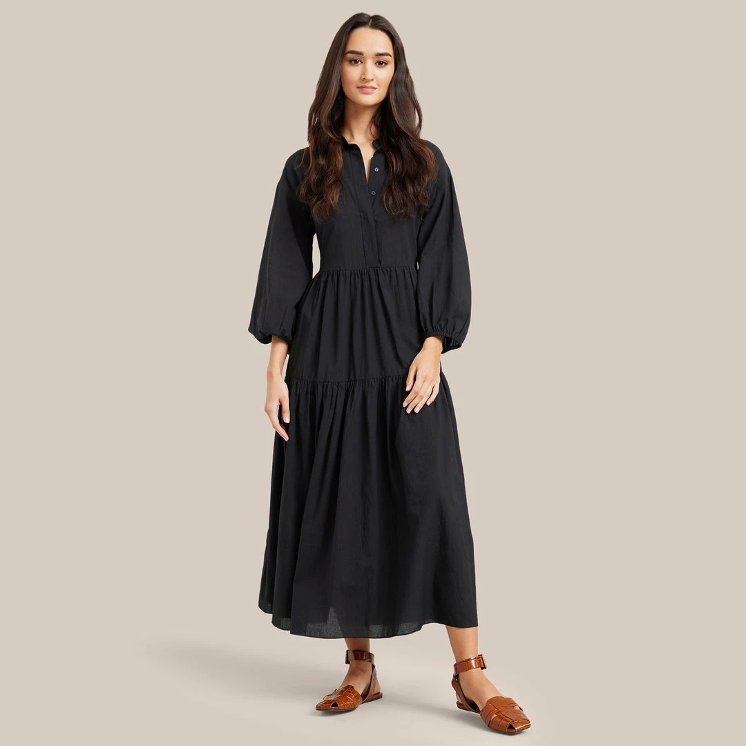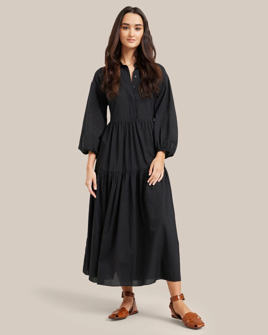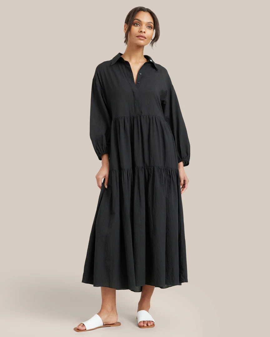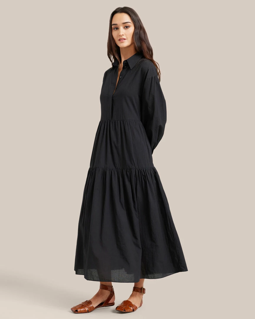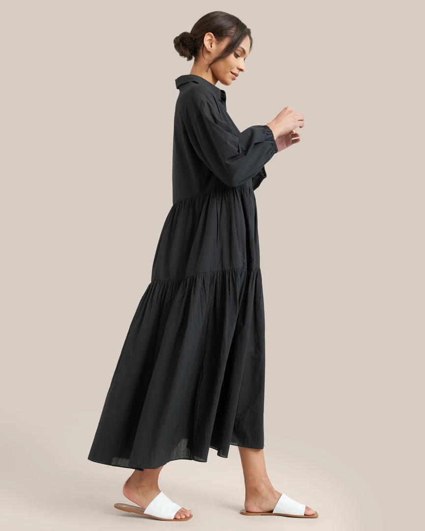Fashion Apparels Delia Organic Cotton Poplin Tiered Maxi Dress
