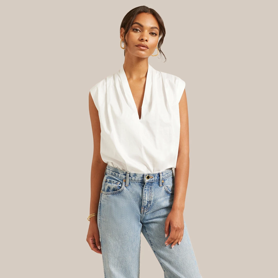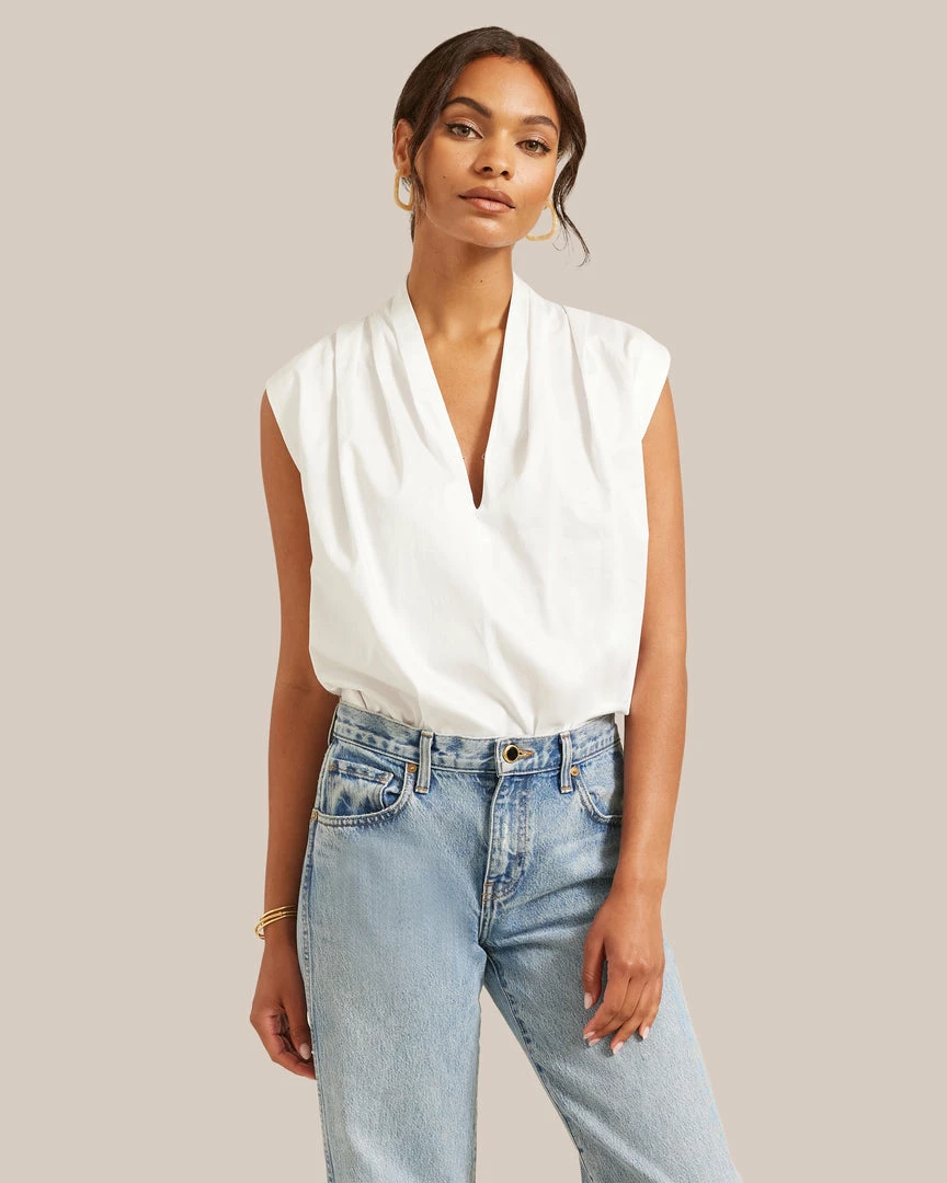 A breezy tank that’s so easy you can wear it any and everywhere. Featuring a flattering v-neck and chic shoulder pleats, Row pairs perfectly with everything from effortless denim to a sleek knit skirt.