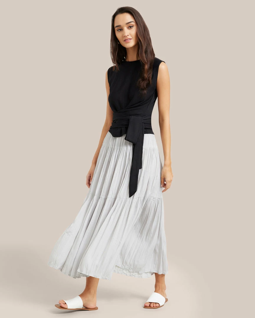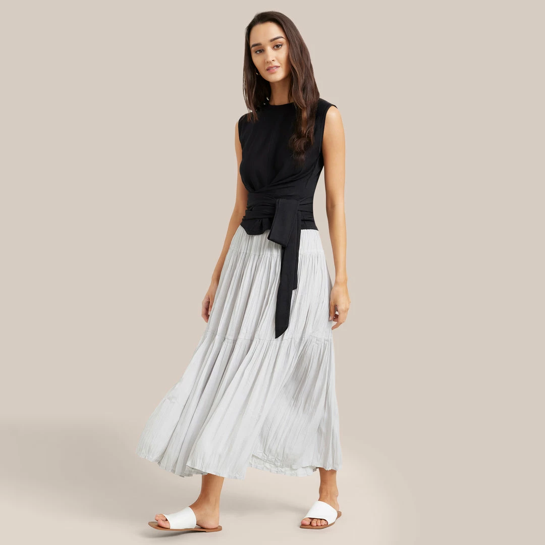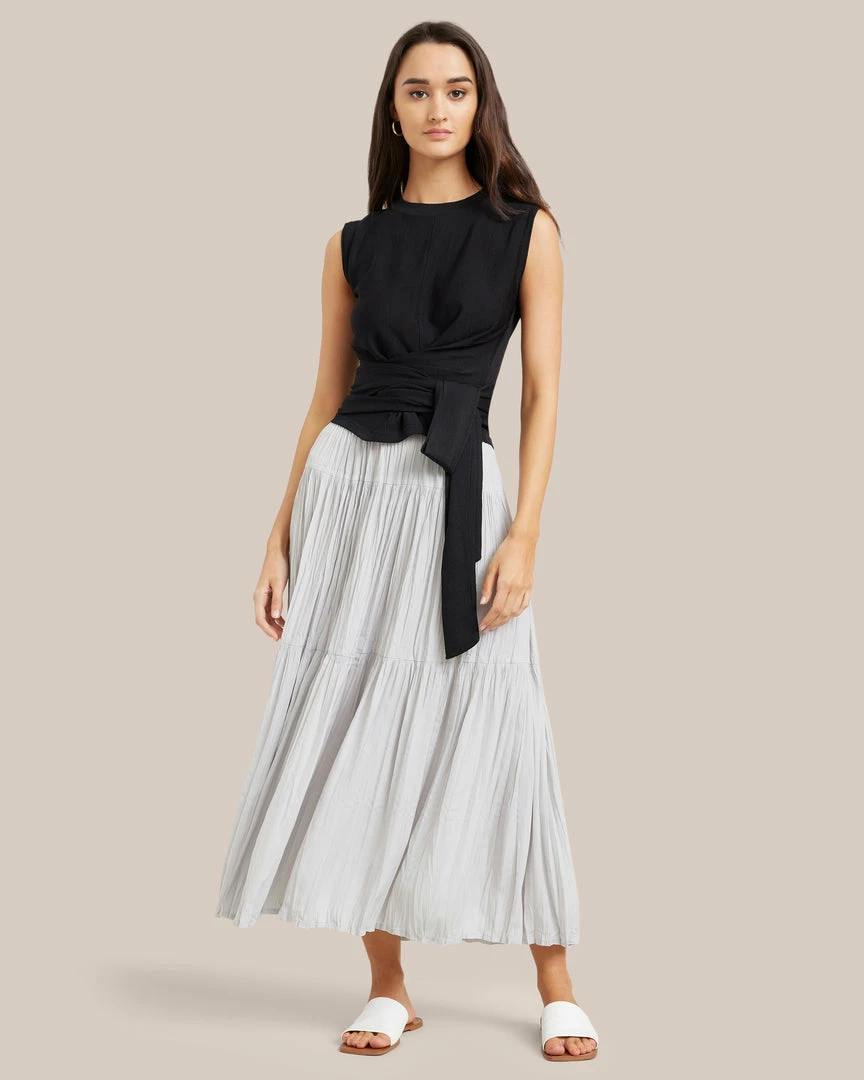 This elegant tiered skirt is perfect for elevating your wardrobe year-round. Style Galena with your favorite knit and boots for an easy yet polished look.