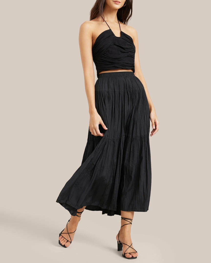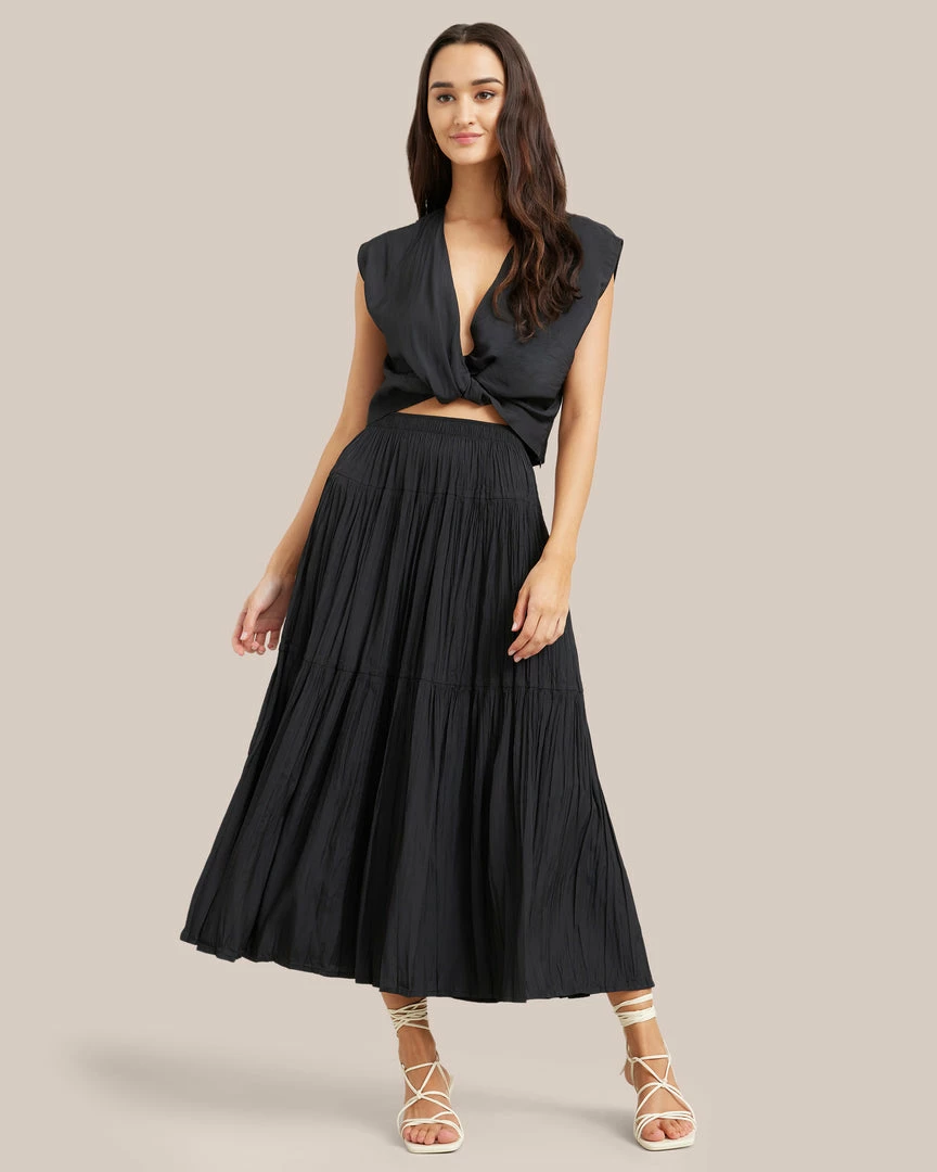 This elegant tiered skirt is perfect for elevating your wardrobe year-round. Style Galena with your favorite knit and boots for an easy yet polished look.