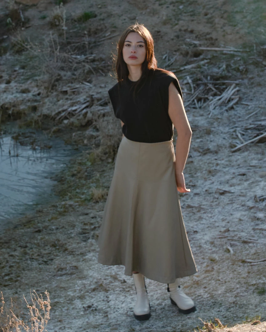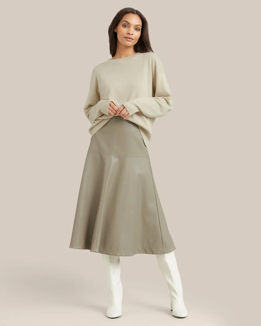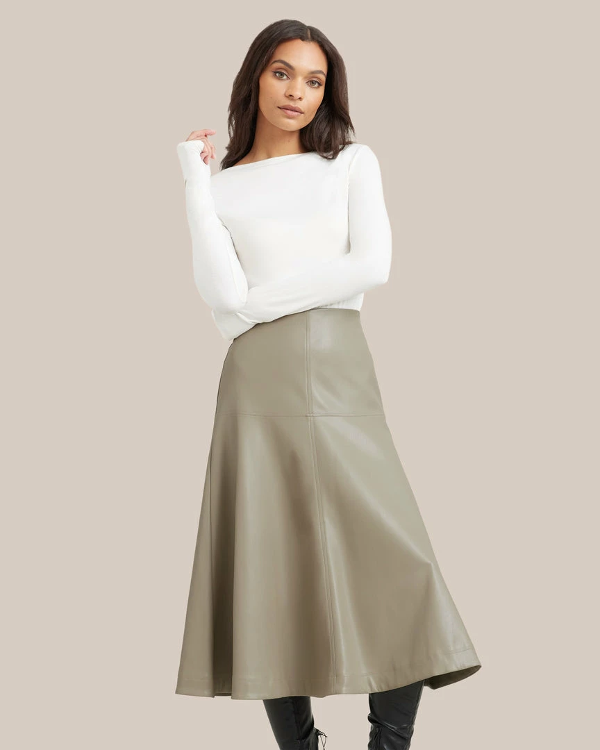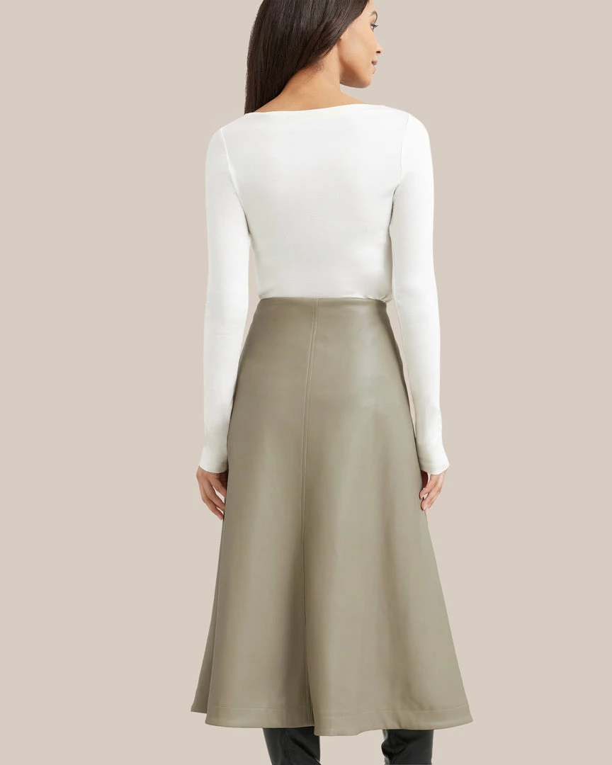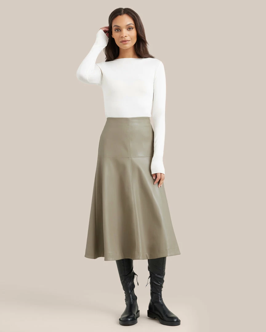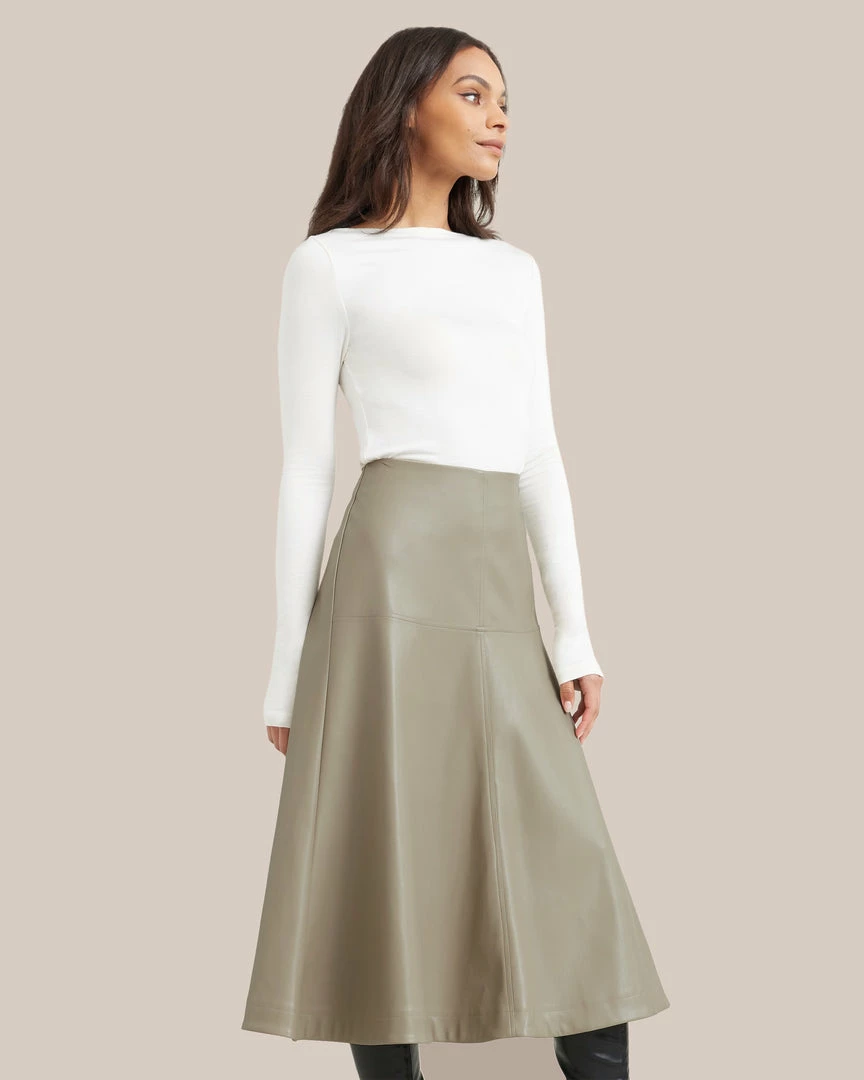 A sleek, architectural skirt cut in vegan leather — Harley is your new polished, easy-to-wear fall staple.