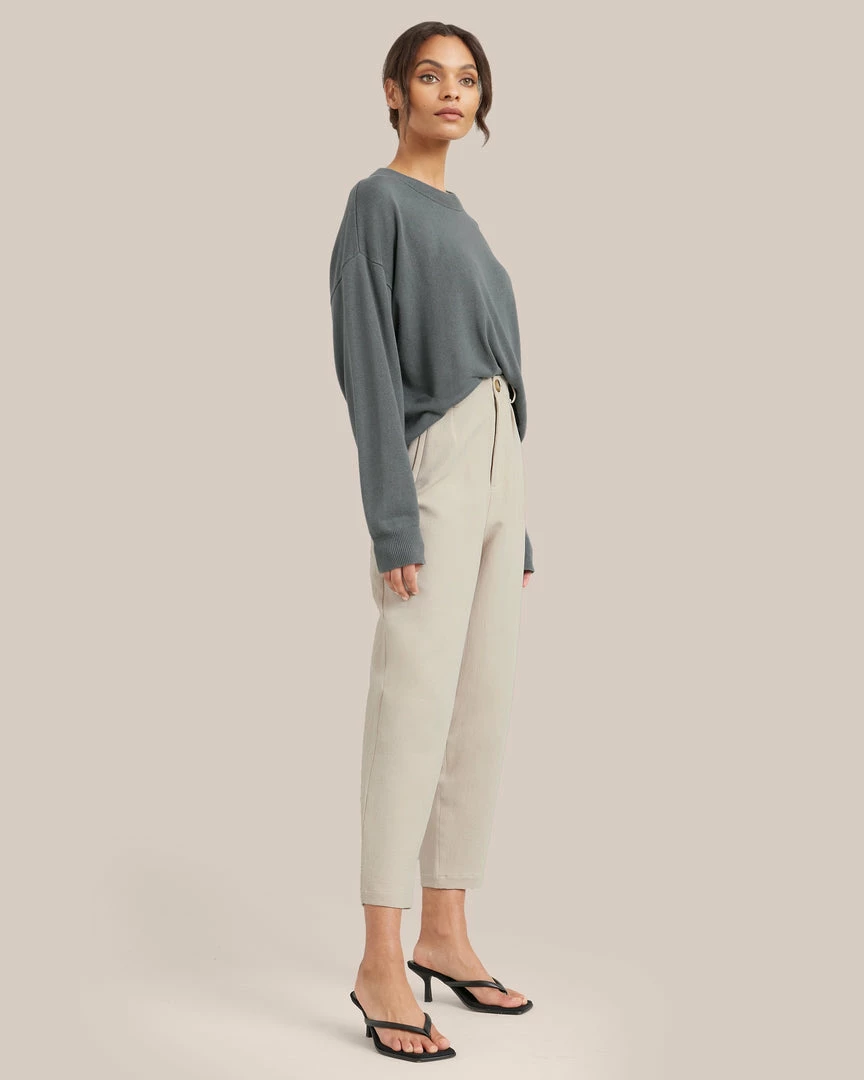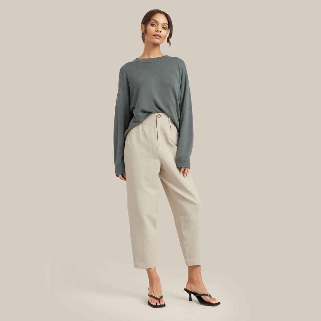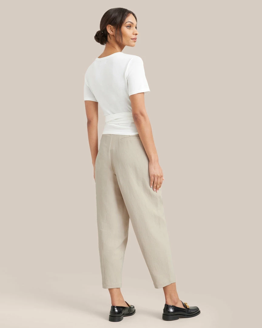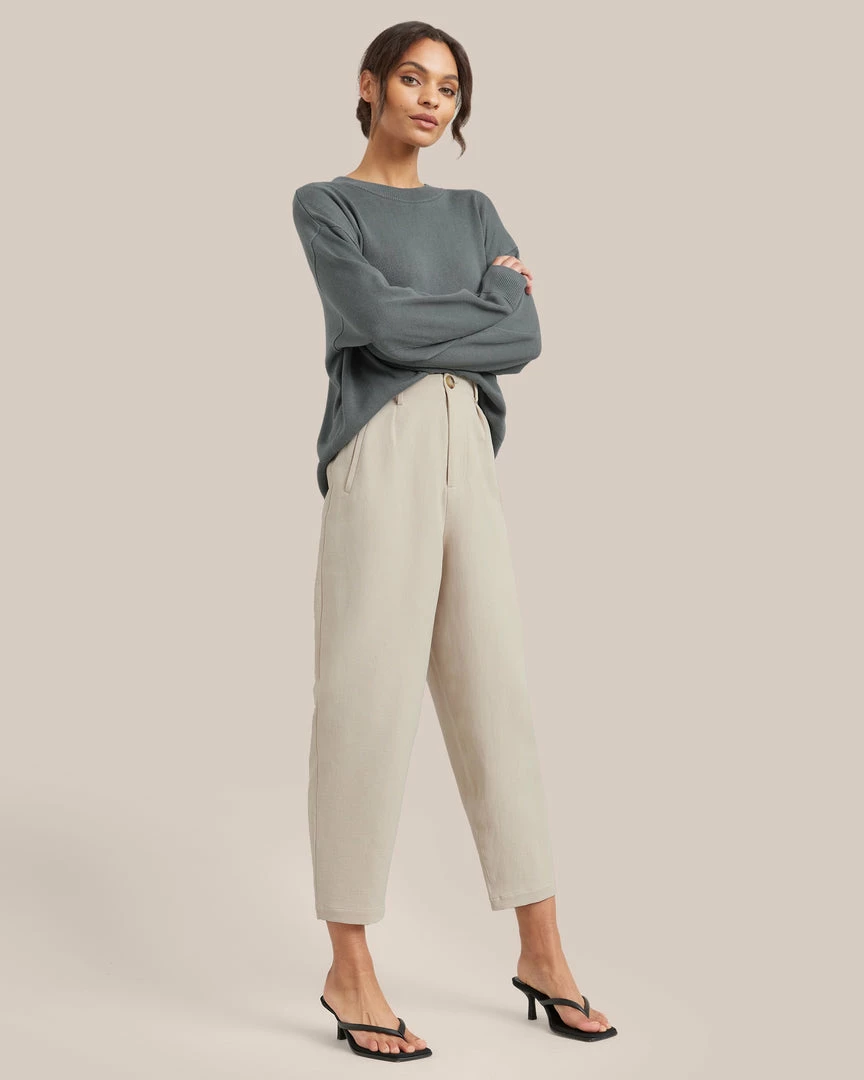 This streamlined pant is an easy choice for everyday wear โ Sahara has a flattering, cropped barrel leg cut and chic high-waist fit.ย Style with your favorite top and loafers for a polished look.