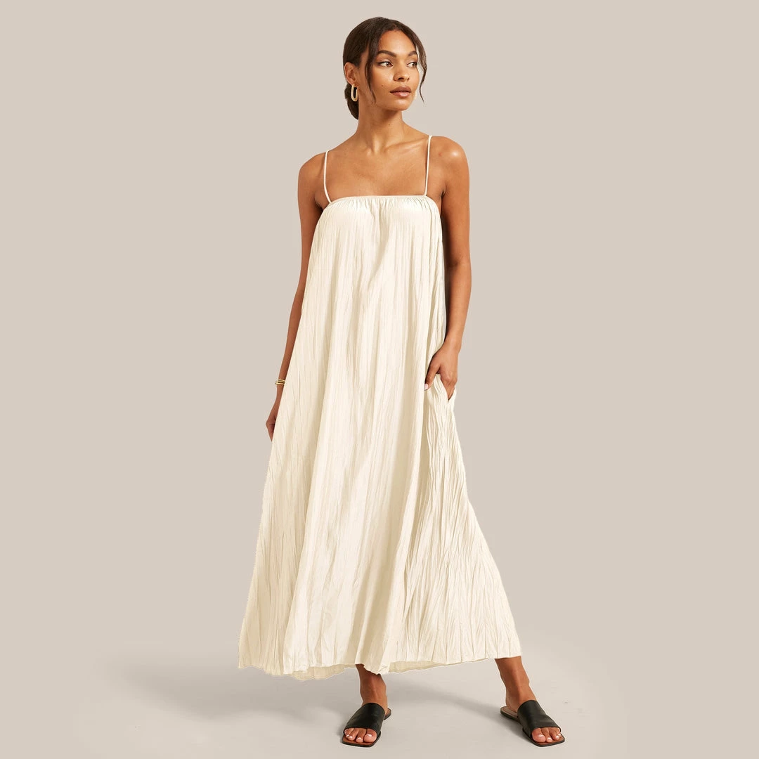 A chic and breezy maxi silhouette that’s perfect to throw on any day of the week. Pair with your favorite heeled sandals to dress Solange up for a night out.