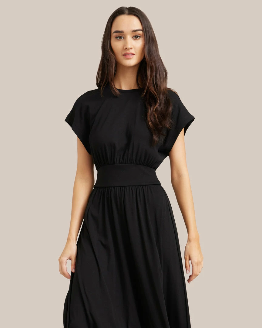 An easy jersey dress with a flattering silhouette, Prima is the perfect weight for spring and summer.