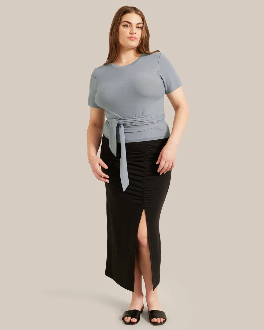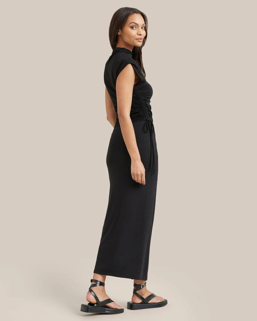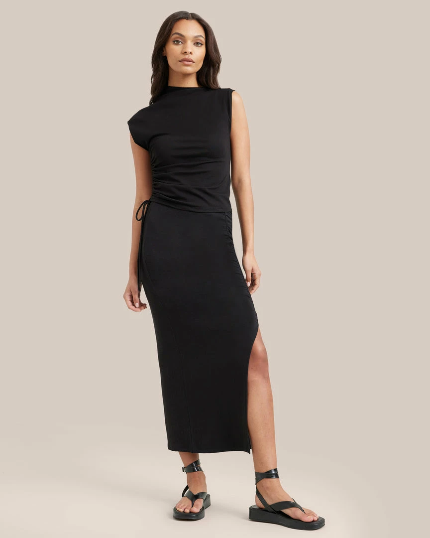 A modern take on the midi with unexpected details paired with the ease of a regular pull-on style.