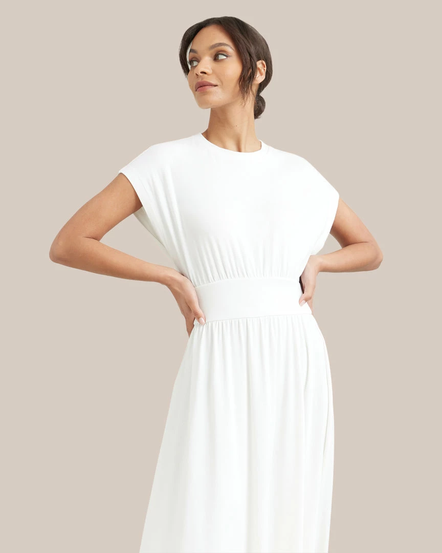 An easy jersey dress with a flattering silhouette, Prima is the perfect weight for spring and summer.