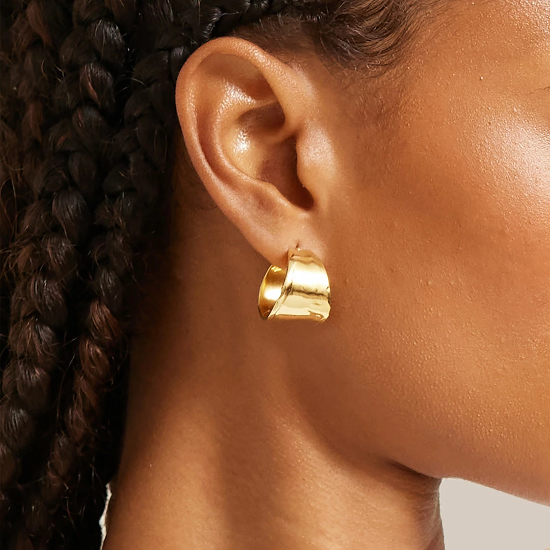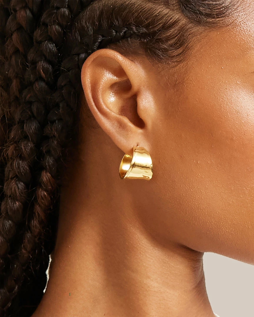 These hand formed and casted earrings have a molten texture that adds a bold shine to any outfit.