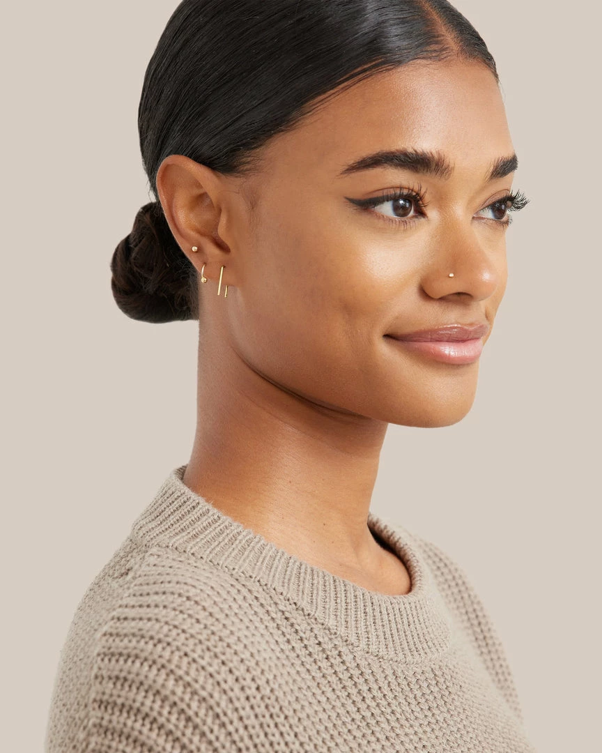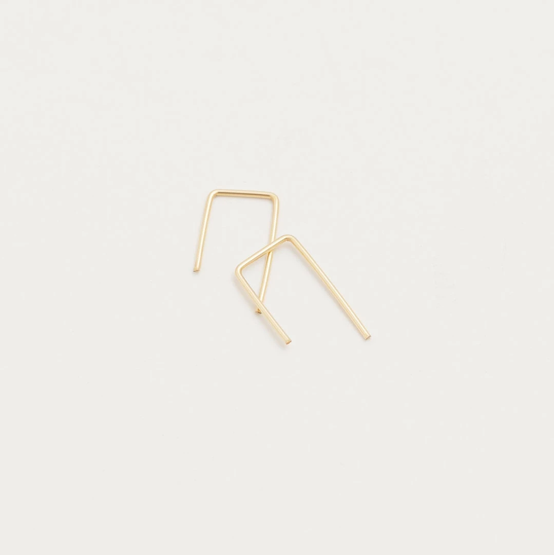 A minimalist pair of earrings with a lean staple design. Thread this delicate earring through the ear for a unique look.