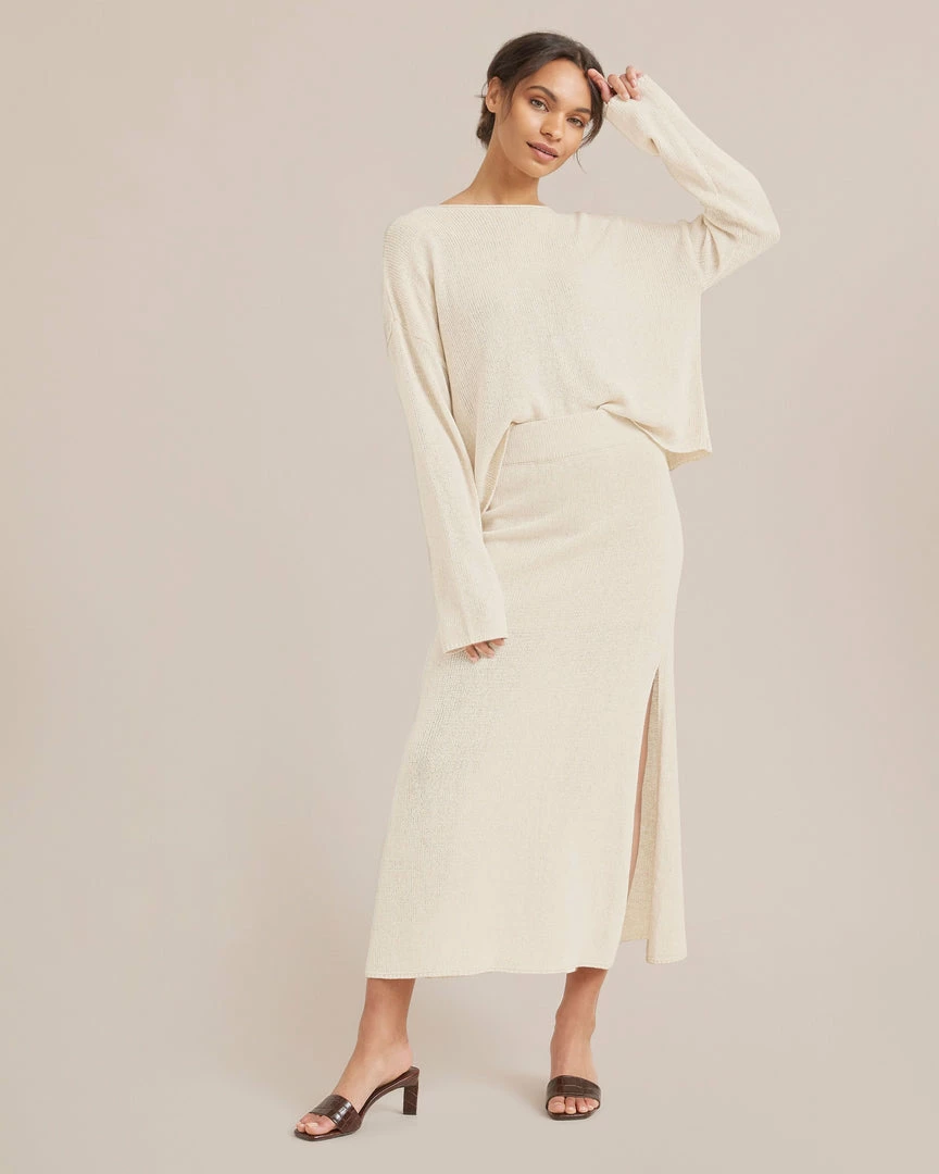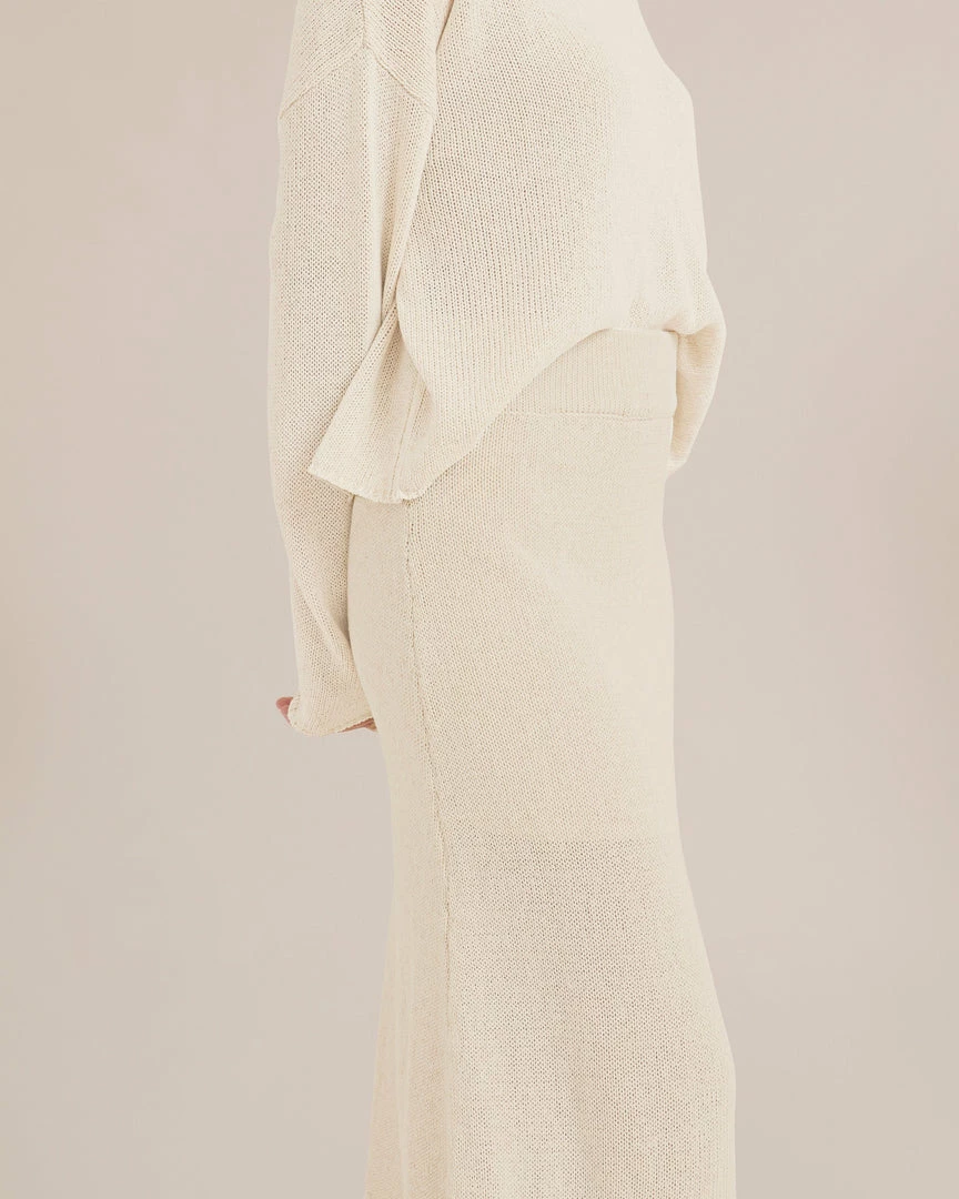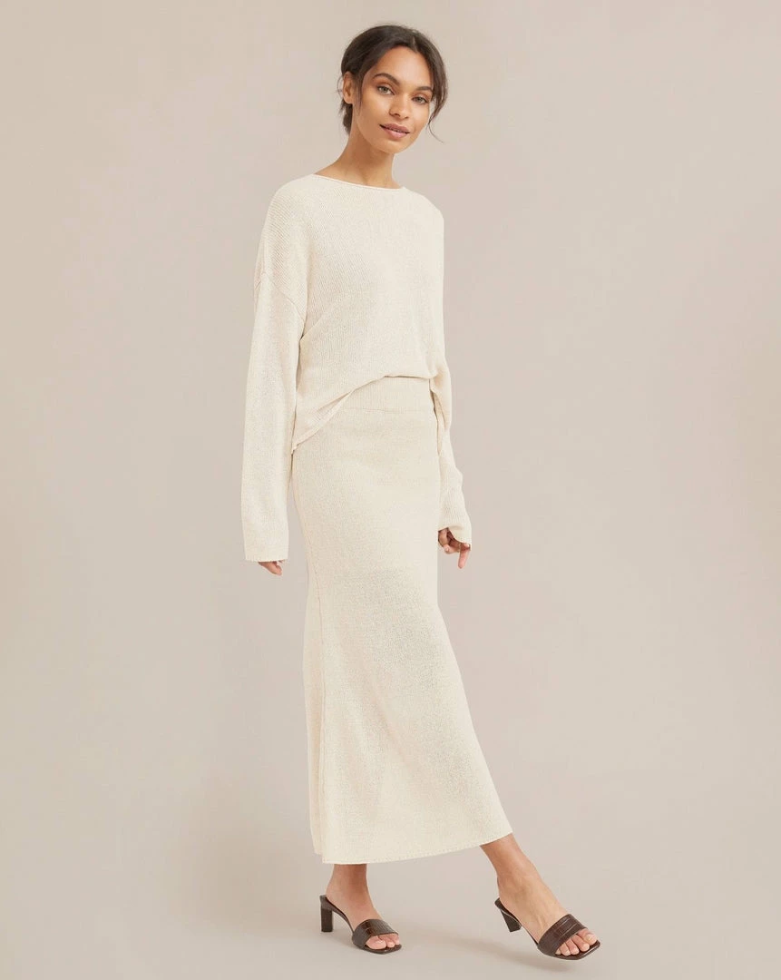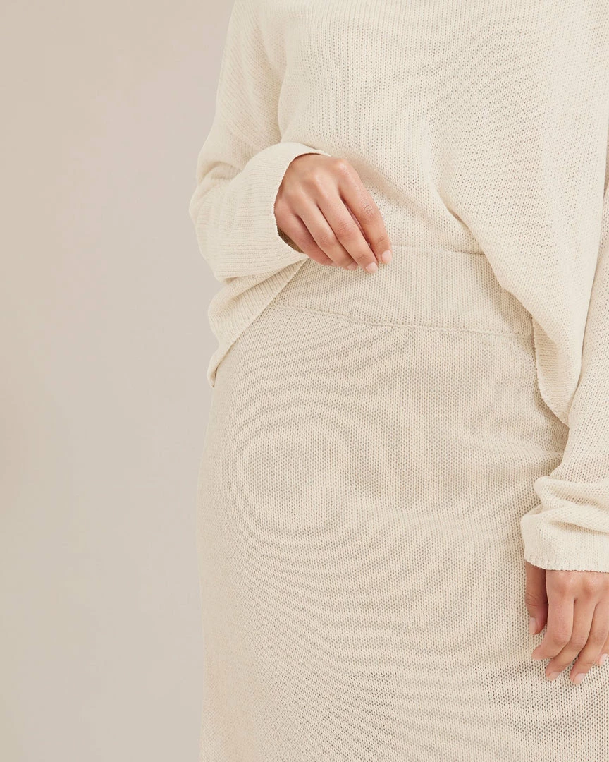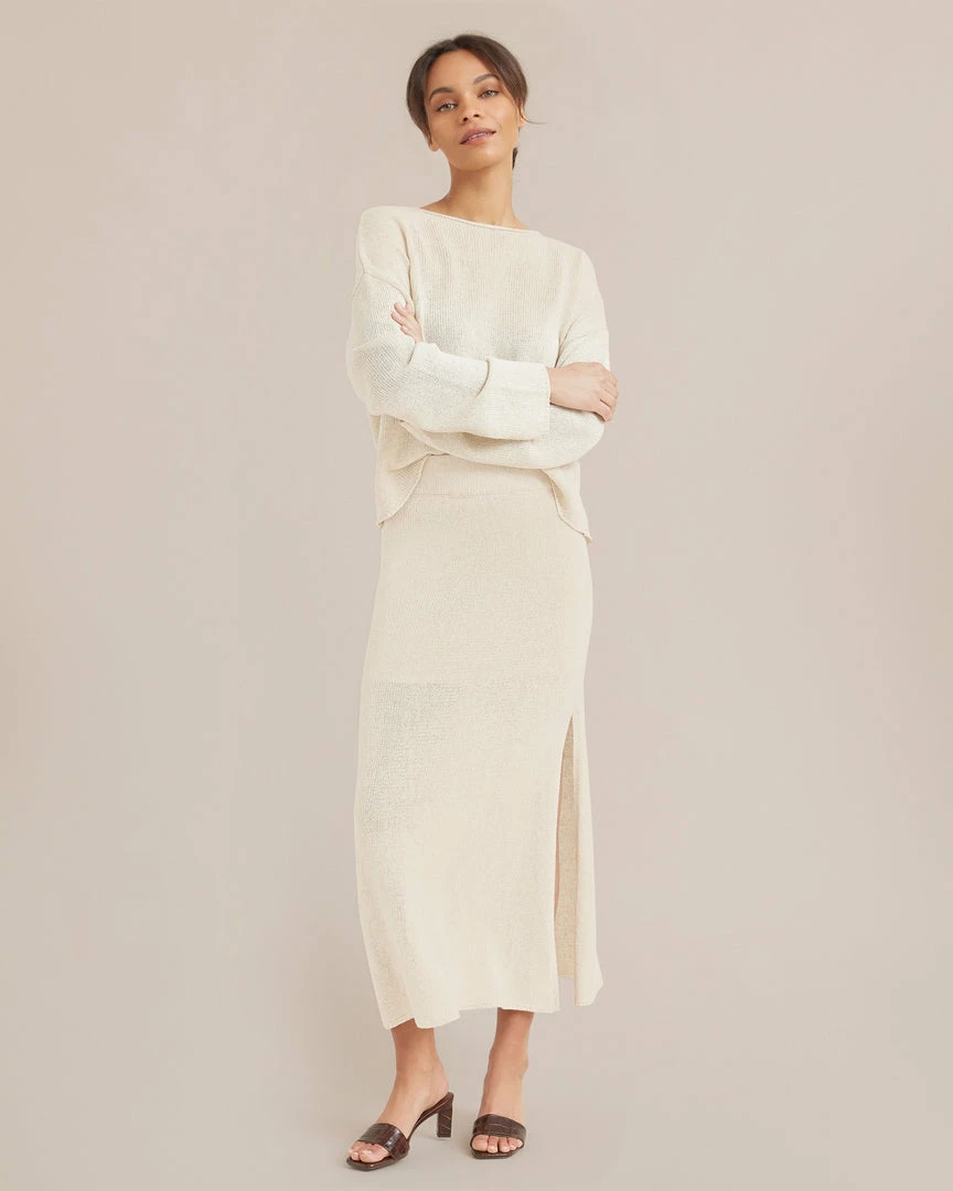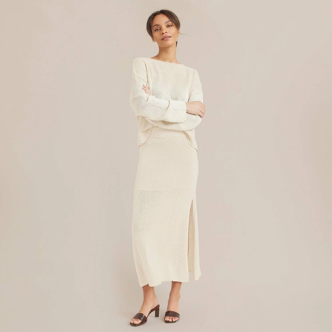 A lightweight and effortless maxi skirt, cut from a breathable linen fabric paired with an underlay for modesty.