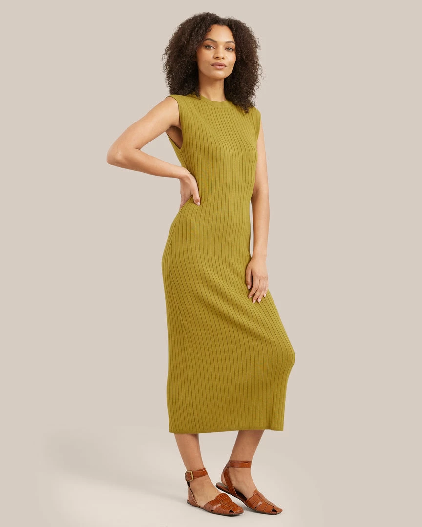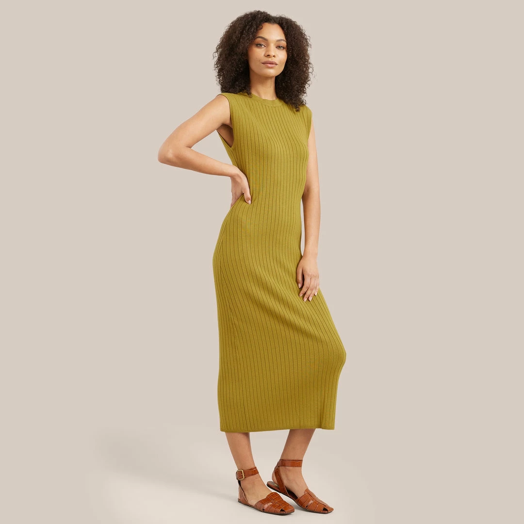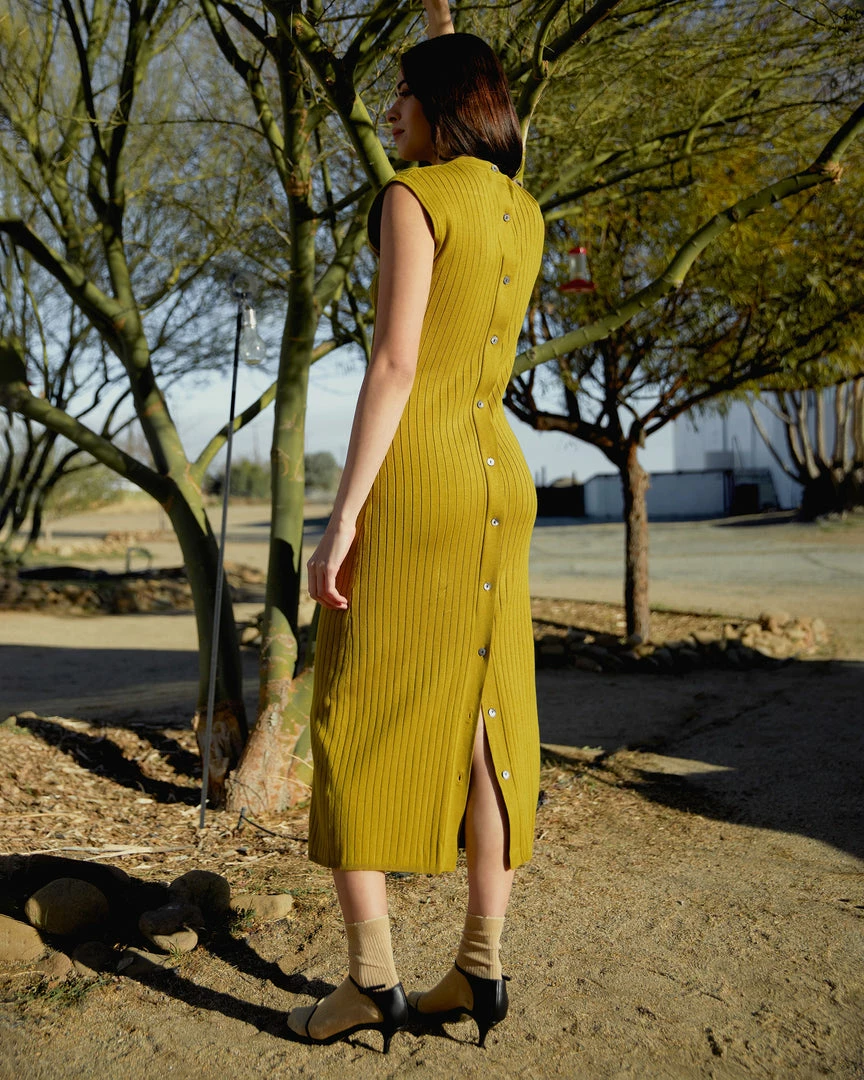This chic column dress is a wardrobe staple for the warmer months. With flattering ribbing and button-back details, Harrah is an easy silhouette for any occasion.