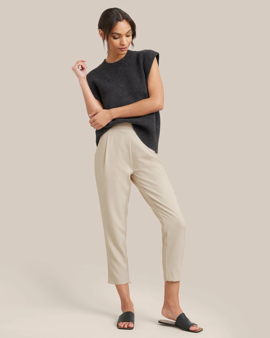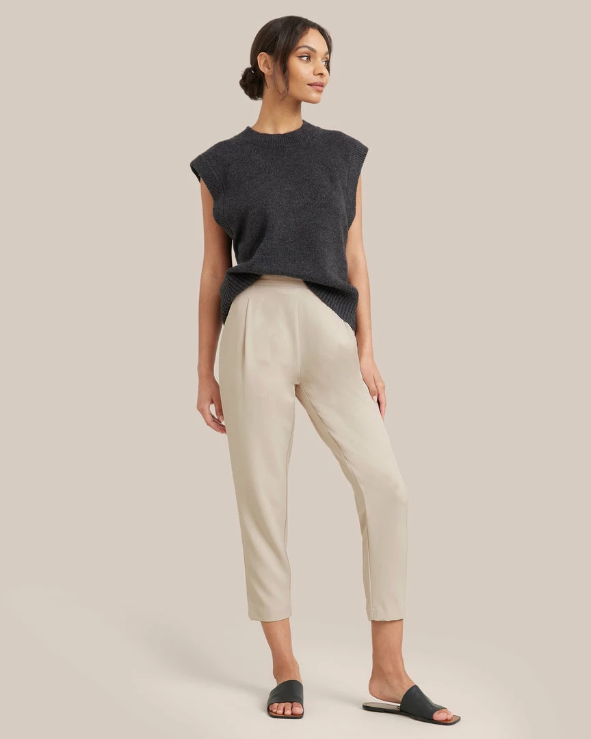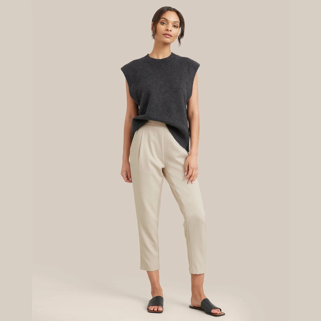 A cool sleeveless sweater with a fashion-forward shape, this piece will be in your weekly rotation. Wear it to add a subtle edge to any look — we like it especially tucked cleanly into trousers.