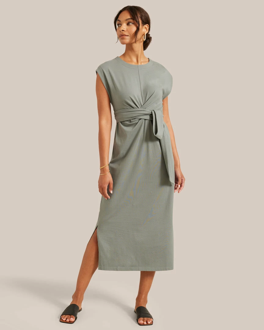 Our modern take on the t-shirt dress in breezy organic cotton — universally flattering and effortlessly polished, with a functional waist-tie that’s built-in.Â